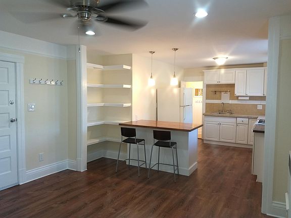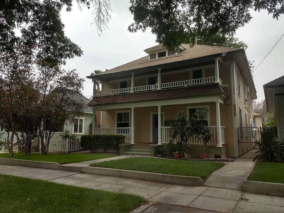 Super nice, completely remodeled and updated 1-bedroom apartment downtown Riverside. Close to everything. Walk to park, Mission Inn, Fox Theatre and public transportation. Less than a mile to Riverside Community College (RCC) and just blocks to the new RCC Culinary and Art Complex and Mission Inn. One block north of Market, one block east of University Avenue on Chestnut Street across from White Park. Close to Mount Rubidoux. Apartment living that feels like a home. Large 600 square foot 1-bedroom, one bath located in a 2-story, 1892 Victorian. Bright sunny apartment with high ceilings, open floor plan, French door, private upstairs patio and original molding throughout. Completely remodeled kitchen including kitchen island with butcher block counter top, tile back-splash, lots of kitchen storage, built-in library shelving and cabinets, stove, refrigerator and microwave. Bathroom has wainscoted walls, tile bath, shower and floors, pedestal sink and shelving. Bedroom features large closet with lots of storage. New faux wood flooring throughout. Dual-pane energy efficient windows (very well insulated and quiet). Plantation window blinds, ceiling fans, recessed lighting with dimmers, air conditioner, gas heater and private deck with great views. This upstairs unit has a private front deck and access to the shared laundry room, backyard garden with a gazebo, table and chairs, trees, grass and planting beds if you like to garden. Secure building and yard, nice neighbors, near park, street parking. Must see interior to appreciate! Now showing and taking application. Move in with first month rent of $1400 plus $1400 deposit. Tenant pays gas and electric. Water and trash service included. Will consider pet with additional pet deposit of $250. One year lease then month-to-month.