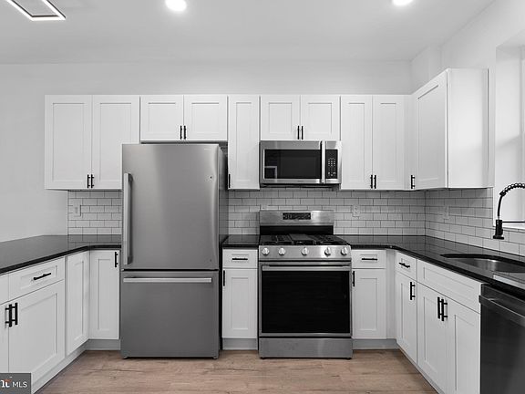 Welcome to this fully renovated 3-bedroom, 1.5-bath rowhome featuring plenty of SWAG, modern upgrades and stylish finishes throughout. The stunning kitchen showcases plank waterproof vinyl, white shaker cabinetry, sleek granite countertops, a drop sink with garbage disposal, recessed lighting, and a spacious island with seating for four. An upgraded stainless steel appliance package includes oven/range, microwave, dishwasher, and large refrigerator. A convenient first-floor powder room completes the main level. Step outside to a unique cement patio with body, crushed rock yard, fully fenced with the potential to convert into off-street parking. Upstairs, the primary bedroom offers a large closet, joined by two additional bedrooms. The spa-like full bathroom features elegant ceramic tile and provides a relaxing retreat. Additional highlights include: Brand-new HVAC system (heating & central A/C) New roof Updated electrical service & wiring New hot water heater New windows throughout This home truly has too many upgrades to list and is a must-see to appreciate!