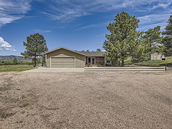 Back On Market-Buyer Could Not Meet Their Contingency*Nestled in Perry Pines, this property boasts breathtaking mountain views that simply must be seen to be believed. The sprawling lot offers practicality with its suitability for various land uses. The ranch-style house features four bedrooms and three baths, providing ample space for comfortable living. Well maintained and adorned with granite countertops, the home exudes pride of ownership. In floor radiant heat in Master Bathroom, lower level bathroom and entry way, all have separate programmable controls. A highlight of the property is the fully finished walk-out basement, adding to the living space and providing easy access to the outdoors. The approximately 24x60 3-stall horse barn and shop are a horse lover's dream, complete with updated entry and garage doors, rubber mats in the stalls, and plenty of shelving for storage. Updates abound throughout the property, including newer exterior paint, updated fencing, and newer concrete floors in the barn and shop area. The upgraded Trex decking and framing under the front deck enhance the outdoor living experience. Inside, the kitchen, bathrooms, and laundry room have all been tastefully updated. With paved and maintained roads leading to the property and a sealed driveway with pebble rock, accessibility is never an issue. Other notable features include a new septic tank installed in 2016, 50 Amp Service for RV Hook Up, updated windows, and upgraded interior and exterior lighting in the shop and barn. This home is truly move-in ready, allowing you to simply unpack and start enjoying the tranquility of mountain living. Despite its serene mountain setting, the property is only minutes away from Castle Rock, offering the best of both worlds with easy access to urban amenities while still enjoying the peaceful ambiance of the foothills. Enjoy the quiet beauty of stunning sunrises and sunsets from this idyllic retreat.