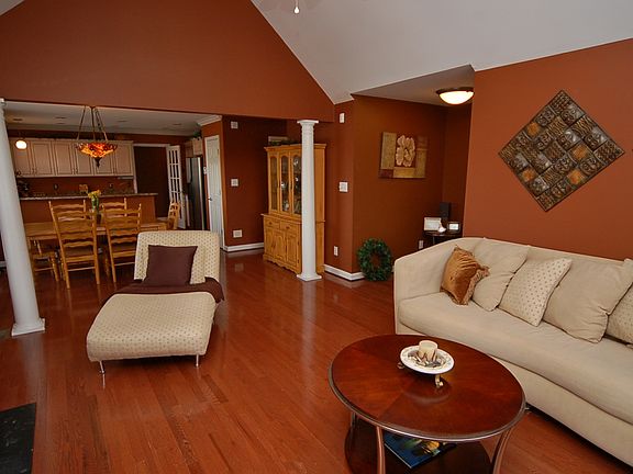 Great lake view from your home. Tranquility! Natural light! Modern! Beautiful 3 bedroom brick ranch. Vaulted ceilings. Kitchen with new, upgraded granite countertops and stainless appliances. Open floor plan allows for easy entertaining. Gas log fireplace. Beautiful hardwoods. Master suite with dual vanities, jetted soaking tub, separate shower and walk in closet. Private deck. Privacy fenced backyard. Cul-de-sac location. Must See!!