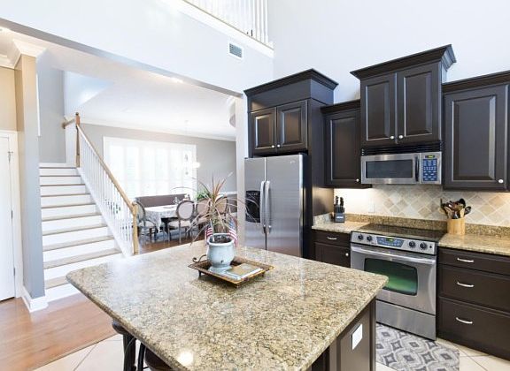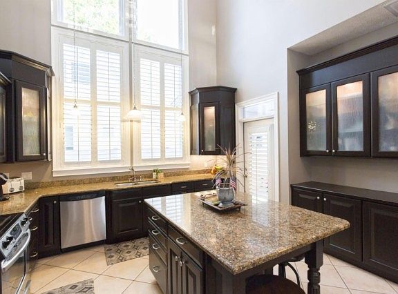 This 4 bedroom, 2.5 bath contemporary home with a southern flair is immaculate! The living room features hardwood flooring, fireplace, huge windows with plantation shutters, trey ceiling and is open to the dining room and access to the covered front porch. Kitchen features recessed lights, granite countertops with an island, ample cabinetry with frosted glass panes, large pantry, and stainless steel appliances. The huge, private master has trey ceiling and is located on the 1st floor with french doors to a covered patio. Master bath features double vanity, separate shower, jetted tub, and walk in closet. There are 3 large bedrooms upstairs with walk in closet, large bathroom, and loft/living room plus a balcony. Community pool, clubhouse, and fitness room. All sizes approx, please verify