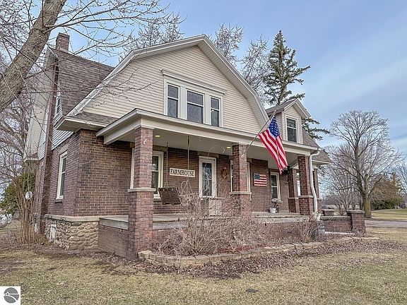 Instantly fall in love with this historic early 1900s farmhouse sitting on 2 acres just outside of Coleman. If the porch swing and large covered front porch caught your attention, just wait until you step inside and see the stunning craftsmanship, elaborate woodwork and original doors complete with vintage hardware. Fit for a large family this home boasts over 2300 ft² of living space with 5 bedrooms and 2 full baths. One bedroom, a bath, and laundry are all on the main floor along with the common areas which feature large windows allowing tons of natural light throughout the house. Two staircases lead to the upper level and the expansive master bedroom, a huge bathroom and 3 additional bedrooms. The basement offers ample storage space and houses the mechanicals which includes a propane furnace as well as a corn/pellet burning furnace. Many updates have been made in recent years including windows, roof, and insulation. Outside you'll find a 24x40 garage which is insulated and heated. An additional outbuilding with electric and water nearby is ideal for 4H animals, chickens or simply more storage space. Soak up beautiful sunsets in the large back yard and don't forget about the above ground pool. There's a whole lot of country charm packed into this rural property yet it's located on a paved road and just a 20 minute drive to Midland or Mt. Pleasant.
