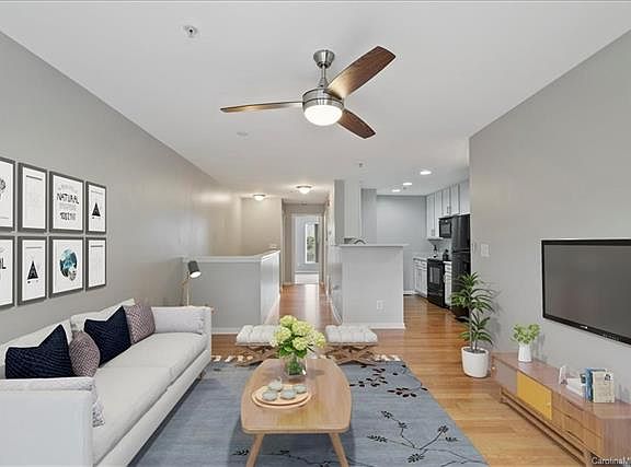 Poolside condo features 2 bedroom, 2 full baths in The Renaissance located in popular NoDa. Unit features freshly painted neutral walls, white cabinets, carrara quartz and black appliances. Hardwood floors in kitchen, living room and hallway. New HVAC and carpet replaced in 2018. Unit overlooks pool and courtyard. Split floor plan w 1 bedroom on main level and 1 bedroom on lower level, great for roommate situation. Amenities include pool, courtyard and outdoor grills. Arts District location close to various restaurants, breweries, live music & more. Stacker washer/ dryer unit and Refrigerator to remain sold as-is. Walking distance to NEW BLUE LINE EXTENSION. Catch the light rail in to UPTOWN or up North to UNCC or IKEA.