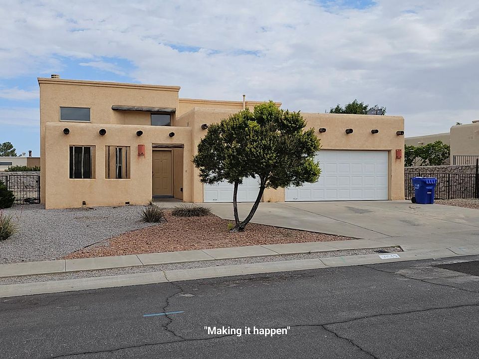 This charming pueblo style single family home can be your next new digs. this gem has just had a makeover. New life proof plank flooring throughout, freshly painted full interior with awesome wood trim surrounding the entire home. Three large bedrooms, cathedral ceiling in main living area. Oversized three car garage and double gates with access to backyard. Nested in the established Parkhill neighborhood. Easy access to NASA & White Sands Missile Range, shopping, banking, and coffee just minutes away. One year lease required, Leesee is responsible for all utilities, this is a non smoking property. No Pets