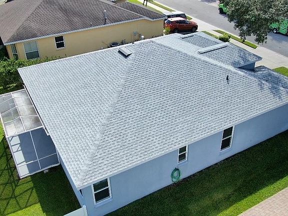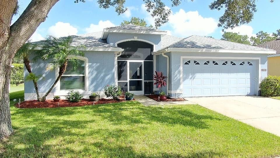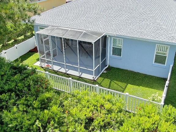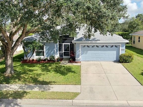 This move-in ready Carillon Lakes home has been beautifully updated and well maintained with NEW DOUBLE PANE WINDOWS in 2020, a NEW ROOF in 2020, and NEW AC system in 2018. The three bedroom split floorpan offers high ceilings, a great room, indoor laundry room, kitchen with breakfast nook, and three sliding doors that let in natural sun light and lead to a covered/screened lanai. This spacious kitchen has lots of storage, updated countertops, a tile backsplash and updated gas stove. Durable and eco-friendly Bamboo flooring was recently installed in all living spaces and bedrooms. The backyard is a private oasis with no rear neighbors and a small vinyl picket fence perfect for small pets. Come enjoy all that Carillon Lakes has to offer! This sought after community boasts a 24/7 guard gated entrance, community recreational facilities including a clubhouse, fitness area, library, pool, tennis courts, play area, billiard room, walking trails and four lakes for catch & release fishing! Basic cable, internet and lawn care is included in the HOA fee.