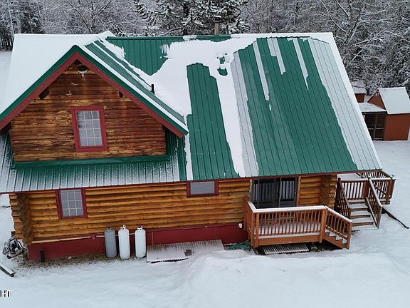 Live on the grid with an off the grid lifestyle on this private sprawling 9.1-acre piece of a homestead. This log home combines rustic charm with modern conveniences with 5-bedrooms, 2.75 bath, living room/family room/upper-level loft, cold storage/root cellar, impressive theater room, a spacious and well-equipped kitchen, and fully finished basement.So much to appreciate in this home with vaulted cathedral ceilings, exposed wood beams, wood stove, recently updated bathrooms, luxurious jacuzzi tub and a walk-in shower. Outside, enjoy the tranquility of a large backyard, wood style boiler, large woodshed, 2 chicken coops, large deck, a custom built smoker, shed for extra storage, new metal roof, workshop, circle drive with two heavy duty gates for privacy, and plenty of wildlife to observe. Don't miss out on owning your own slice of paradise in the Great Land, call today so you can see it for yourself!