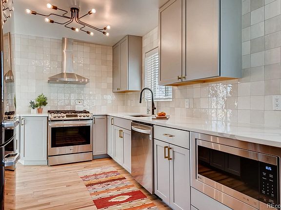 Extremely rare opportunity to buy old home character with brand new modern updates in Denver's sought after Sunnyside neighborhood. This beautifully remodeled brick bungalow offers a perfectly appointed layout with two bedrooms, a bathroom, and living space on each of the two levels. Period custom doors and hardware throughout, as well as custom tile in all wet spaces. The high-end kitchen offers stunning quartz countertops with a waterfall edge, high end appliance package with European style SMEG fridge, Italian Clé tile backsplash to the ceiling, brand new cabinetry, and refinished original hardwood floors. Oversized windows in every direction result in sun filled space all day long. Downstairs has a large living/entertaining space including a wet bar with beverage fridge, home office space, laundry room with industry best GE W/D, and ample storage. The oversized lot is an outdoor entertainer's dream with large front and back yards with brand new cedar privacy fence. The backyard also includes a brand-new patio with outdoor built in fireplace/chimney. Plenty of places to park, including street side, a two-car garage, and a private spot within your new back yard. Brand new high-efficiency furnace, central air, water heater, and smart thermostat make your monthly bills extremely low! All new electric throughout the entire house also. Property is zoned for accessory dwelling as an added bonus! This location has it all - walk across the street to the brand new, unmatched, locally sourced grocery store, Leever's Locavore. Or enjoy neighborhood favorites like Bacon Social House, The Cherry Bean, Wolf's Tailor, Ernest Hall, Lo-Hi, Highlands, and Tennyson Street. Uber rides are cheap as you are only 5 minutes to RiNo, Coors Field and Bronco's Stadium. Connect within minutes to all major highways including I-25, I-70, I-76, Hwy 36. Truly a Northside gem!