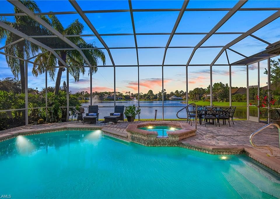SPECTACULAR WATERFRONT VIEWS!! Located in the very desirable north Naples community of Wilshire Lakes and in an A-Rated School Zone. This spacious home boasts 4 bedrooms, 3 & 1/2 baths, 2 car garage, AND a luxurious PRIVATE POOL & SPA. Inside features include both formal and informal areas for entertaining. Flooded with natural light, the pristine kitchen is complete with Granite countertops, double ovens, a large kitchen island, breakfast bar, and eat-in area overlooking the lake. Luxury vinyl floors throughout the main living areas. The master bedroom has more breathtaking views and access to the enclosed lanai and pool area. The master bathroom is tiled throughout, includes his & hers sinks, and a whirlpool soaker tub. Wilshire Lakes offers a Clubhouse, community pool, tennis courts, exercise room, nature trails, bike paths & more! Centrally located to Mercato, Waterside, 5th Ave, & close to Beaches. Waterfront living at its finest!