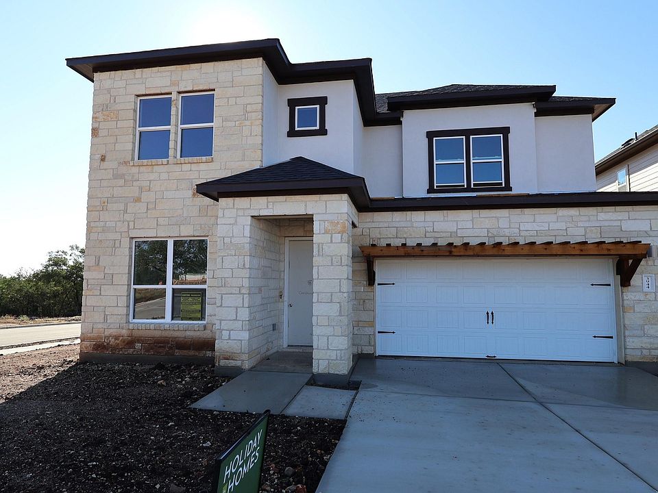 This gorgeous open concept Congress-II floor plan is a bright and functional 2 story home. It features a secondary suite downstairs, a large owner's suite with bay window, and deluxe bath, and 3 large secondary bedrooms upstairs, the smallest of which is 12'x13'. All 5 bedrooms of this homes have walk-in closets and two of the bedrooms share a Jack and Jill bathroom. This bright open concept 2 story is loaded with features and upgrades that include the following: Bay window Luxury vinyl plank(downstairs common areas) 8' front and interior doors Whole home faux blinds White kitchen cabinets Extended kitchen cabinets 5 burner cooktop and vent hood White quartz countertops Upgraded floor and wall tile in the bathrooms Mudset showers Guest suite walk-in shower Open metal railing at balcony and stairs Upgraded lighting in owner's bedroom, family room, and game room The home will be ready in December. Schedule a visit to view this home with all of its upgrades and design selections!