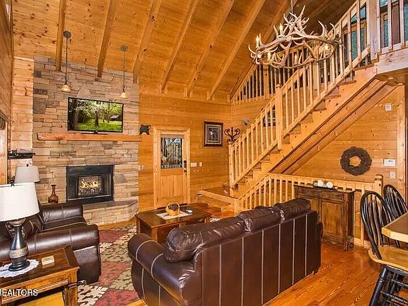 BEAUTIFUL LOG CABIN IN THE GREAT SMOKY MOUNTAINS. This cabin is a single-family log cabin on a 2.52-acre wooded lot with 2,418 sq ft, 3 bedrooms, 3 full bathrooms. Features include:Open living area with wood flooring, cathedral ceilings, gas-log fireplace. Furnished with W/D hookups, whirlpool, recreation/game room, wet bar and mini fridge. Full finished basement . Multiple covered decks with scenic mountain views . Hot tub/spa, firepit area, horseshoe pit, and your own miniature golf course. Located in the Wonderland Ridge subdivision, Sevier County. This property can be used as a permanent residence or short term rental with great income. This stunning retreat has all the amenities that you need for your perfect getaway.