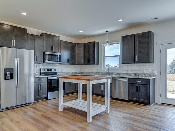 Welcome to your dream home! This stunning, newly built ranch-style home is nestled on 1.38 flat acres, offering you the tranquility and privacy of country living, while still being close to amenities. This home features 3 spacious bedrooms, 2 bathrooms, 9' ceilings, open concept living, and a Gourmet Kitchen with a large farm sink, dovetail soft-close cabinets, and granite countertops. The kitchen is also equipped with 42-inch upper cabinets for extra storage and a portable wood-top island perfect for additional prep space. The separate laundry room includes upper cabinets as well as a convenient sink, and the primary bedroom boasts a private ensuite with a double sink vanity, granite countertop, and a luxurious tub/shower combo. Don't miss your chance to own this gorgeous property! Call to schedule a showing today!