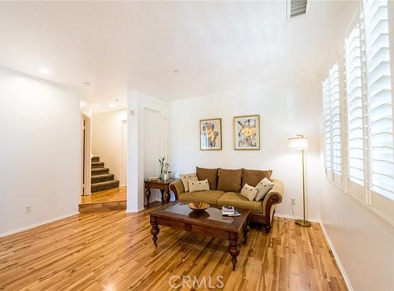 Spacious 3 bed 2.5 bath two-story townhome conveniently located near shopping malls and restaurants an access to fwy. Home features upgraded granite countertops, high vaulted ceilings with ceiling fans in every room, wood laminate flooring downstairs with new plush carpet upstairs, and an attached 2 car garage. Community includes a resort style pool, park, and around the clock security. Refrigerator, washer/dryer, bbq, ring security, water and trash are included.