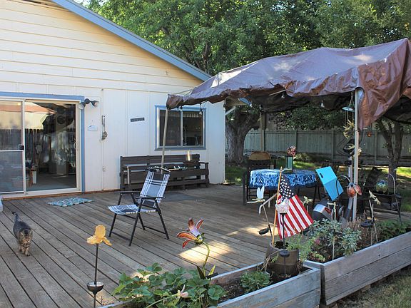This nice home in Sunset Village has a beautiful courtyard with built-in flower boxes and has lots of potential inside and out. This 3 bedroom 2 bath home also has a finished room that could be used as a 4th bedroom or bonus room. The family room and dining area have a gas fireplace and large sliding patio doors that lead to the fenced back yard. Living room also has large sliding patio doors that lead to the deck. Kitchen has plenty of storage and a breakfast bar. All appliances stay. This home also features a gas F/A furnace with A/C, plenty of extra parking, RV parking, large pantry in garage, patio area, and deck. The large fenced yard has mature shade trees along with red, yellow and peach colored rosebushes, apple tree, flowering plum tree, lilacs and a Russian Sage.