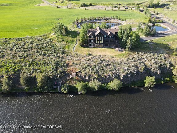 Perched above the breathtaking Fall River, 3944 Schaefer Lane in Ashton, Idaho, is a custom-built retreat designed to make the river the focal point of every space. Every detail of this 4-bed, 5.5-bath cabin was crafted to maximize the stunning water views, with expansive windows, vaulted ceilings with exposed wood beams, and seamless indoor-outdoor living. Each generously sized bedroom features a private en-suite bath, a walk-out balcony, and unobstructed river views. The primary suite is a true sanctuary, complete with a gas fireplace, an oversized soaker tub, and a steam shower, all positioned to take in the scenery. The open-concept main level blends the kitchen and living area with the outdoors, leading to a spacious deck with built-in seating. The lower level features a sauna.