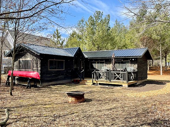 Dreaming of your own private lake cottage to escape to? Built in 2022 on the shores of Little Toad Lake, this charming cabin is nestled on a wooded 1.26 acre level lot with 161 ft. of shoreline. On the inside, the cabin features 1 bedroom and 1 bathroom, with modern finishes that create an inviting and cozy atmosphere. The kitchen features modern custom cabinetry and a throw-back styled Galanz refrigerator. The knotty pine main bedroom with vaulted ceilings has incredible outside lake views and the bathroom feautres a tiled shower, in-floor heat and stackable washer-dryer. This property with its size and elbow room offers endless possibilities to add on to the cabin and build your dream shop.