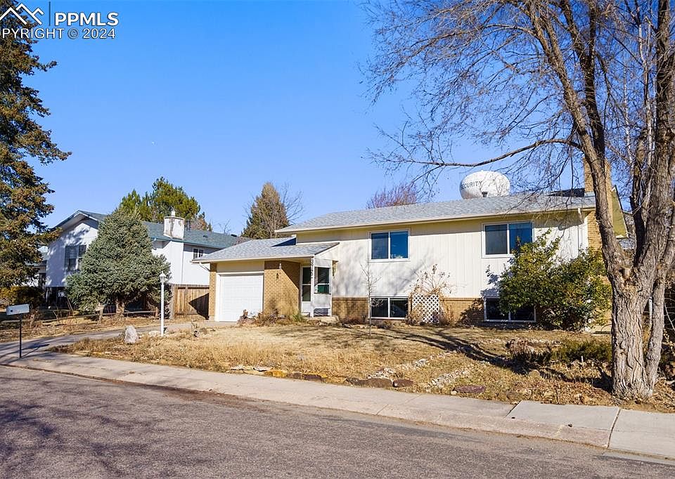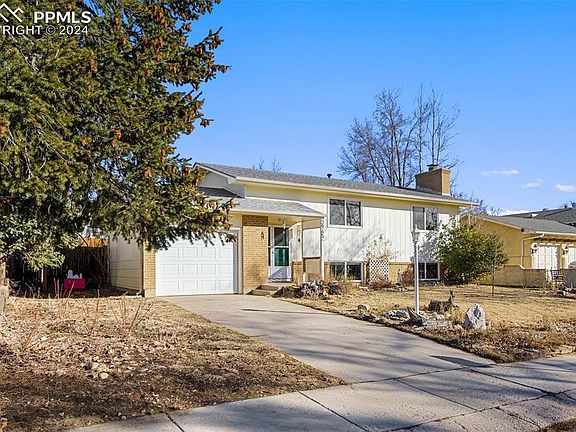 Welcome home! This light, bright and charming home has lots of space, great location & killer Pikes Peak VIEWS! The upper level has a bright, open Living Room with an oversized window staring front & center at Pikes Peak * Eat-in kitchen with adjacent dining area and walkout to the back deck * The lower level has a big Rec Room with a wall-to-wall brick WOOD BURNING fireplace to enjoy during the next Arctic Blast * Newer windows * Bonus storage space in the huge utility room * 1 car attached garage with opener * Bonus parking or camper/RV parking on the side of the garage * Oversized back deck for grilling out & overlooking your fully fenced yard * Play ball, let the dogs run, or build your dream garden * Enjoy a foundation of perennials and blackberries already established in the front yard, too * Shed in back to store all your yard toys * Located in coveted Clear View Estates, this neighborhood is close to everything including local parks, sports fields, COS airport, Amazon, Peterson/Schriever, and all the shopping, dining & entertainment you could ask for along the Powers corridor.
