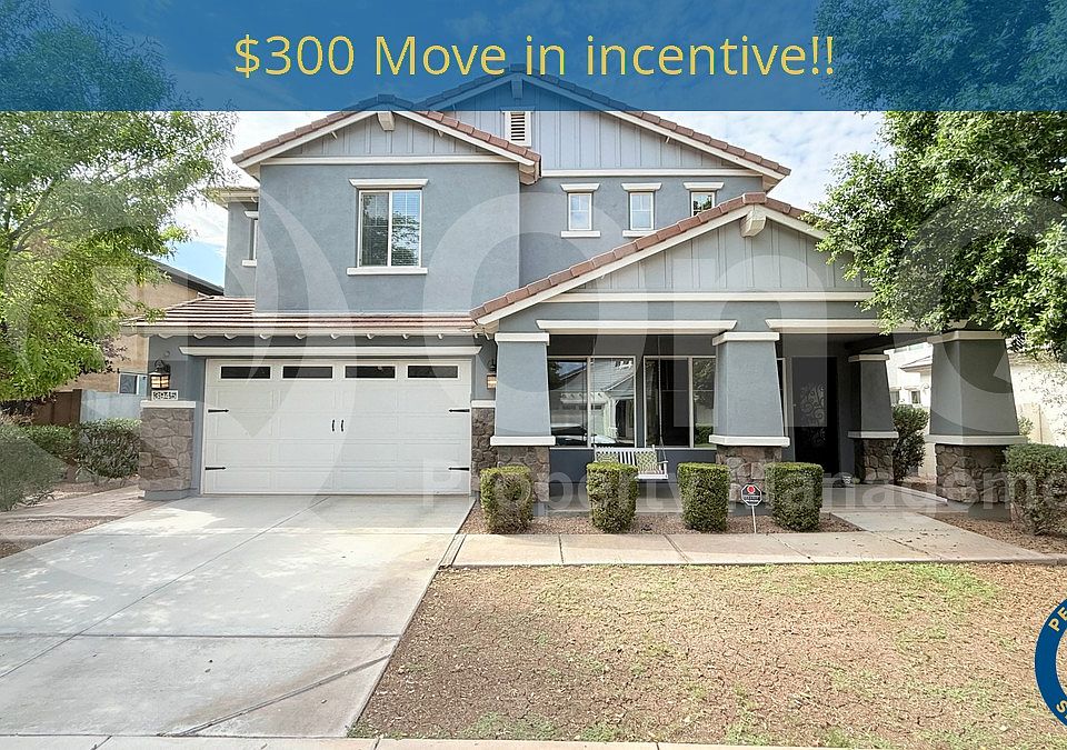 3,503 SQ FT! Stunning 4-bedroom, 3-bath home + Office/Den built in 2013 with a spacious two-story layout. The gourmet kitchen features stainless steel appliances, a double oven, quartz counters, and a large center island perfect for entertaining. The open-concept living and dining areas are designed with abundant natural light and stylish finishes, complemented by beautiful new tile flooring throughout. The luxurious primary suite offers a walk-in closet and a spa-like ensuite bath with dual vanities, a soaking tub, and a separate shower. Three additional bedrooms are generously sized, each with access to full bathrooms. A dedicated laundry room includes a washer, dryer, and extra storage. Enjoy the resort-style backyard with a sparkling pool, covered patio. Additional highlights include a water softener, RO system, and an attached garage for ample parking. Located in a desirable community with HOA amenities, this home offers both comfort and convenience. **Security Deposit 1.5x Rent**