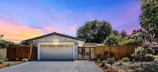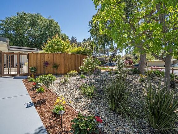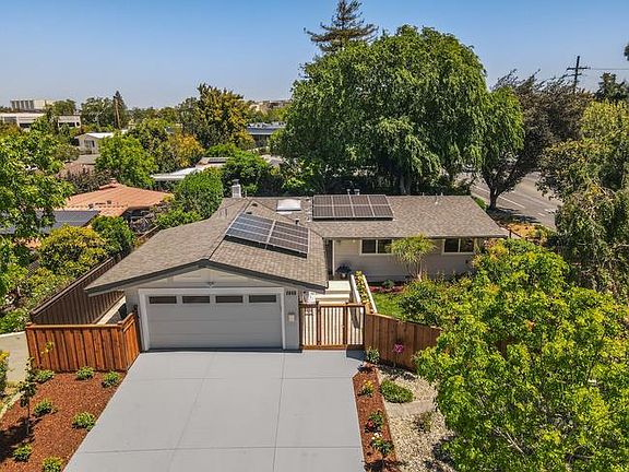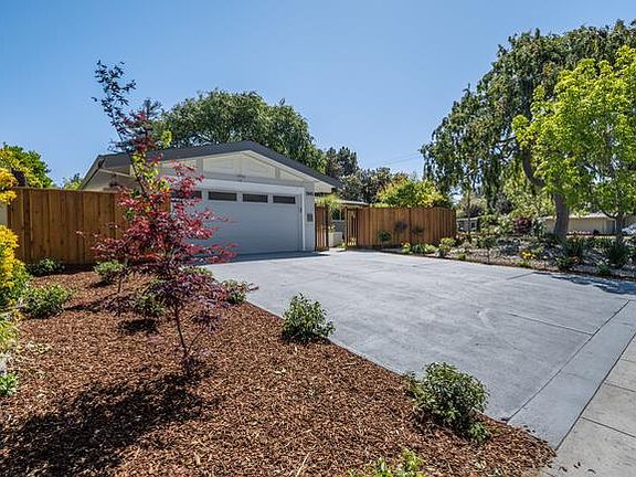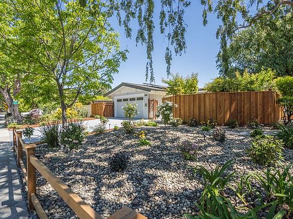 Stunning updated Mid-Century Modern on park-like grounds. Huge corner lot. Extensive redesign brings the outside inside. Bright, airy, Great Room floor plan w/ open beam ceilings. Gourmet kitchen w professional-grade appliances (Wolf, Bosch), custom backsplash tiling, waterfall quartz counters. LED recessed lights & designer wall sconces. High-end millwork w frosted glass-trimmed interior doors & closets. Polished chrome LED lights and plumbing fixtures. Upscale BAs with designer touches. Engineered European Oak floor. Updated wood-burning fireplace with quartz surround. New garage door, epoxied floor. New central A/C, water heater, upgraded electrical & plumbing. Work done w permits. 30-year Class A roof; photovoltaic system on grid. Hardscape w new concrete, redwood fencing. Landscaping w lawn, irrigation, automatic sprinklers, mature trees, plants, & decorative water fountain. Curb appeal. Top PA schools. Prime location and biker's paradise. Come and make it yours!