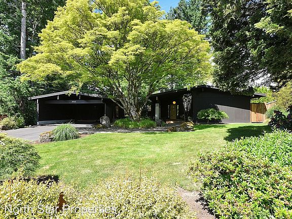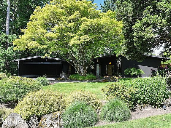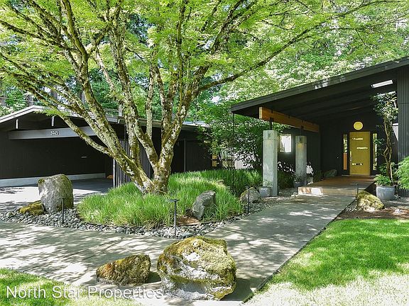 Iconic Mid-Century Modern in Wilcox Estates - Come home to this bright and freshly updated mid-century home in the sought after and welcoming Portland Wilcox neighborhood, offering exclusive use to the Wilcox community pool and tennis court. Centrally located, this crisp and modern home offers easy Urban access and proximity to Portland's Silicon Forest corridor. This elegant home greets with a wide covered walkway, crisp clean lines and a peaceful Zen garden vibe. The entry opens into revolted, post and beam great room with the light hardwood floors flowing and connecting the designated areas. To the left is the special Skelly kitchen with a light wood cabinetry with soft close drawers and multiple large skylights bathing the room with light. Kitchen features stainless steel appliances, a gas range, and expansive counter workspace. The living room features an original rock wall fireplace and floor to ceiling windows. There is a bonus room with a home theater space that has built-in surround sound as well as plenty of secure and convenient basement storage for sports equipment, bikes, etc. The generous laundry room and carport access is conveniently located adjacent to the kitchen. The wing to the right off the entry leads to the four bedrooms including an office with plenty of space and a master with en suite and a large glass sliding door opening to the serene garden and large, private yard. This wing includes a wall of closets offering amazing storage. No smoking and no pets please. Bridlemile Elementary, Gray Middle, Wilson High School. No Pets Allowed (RLNE4951273)