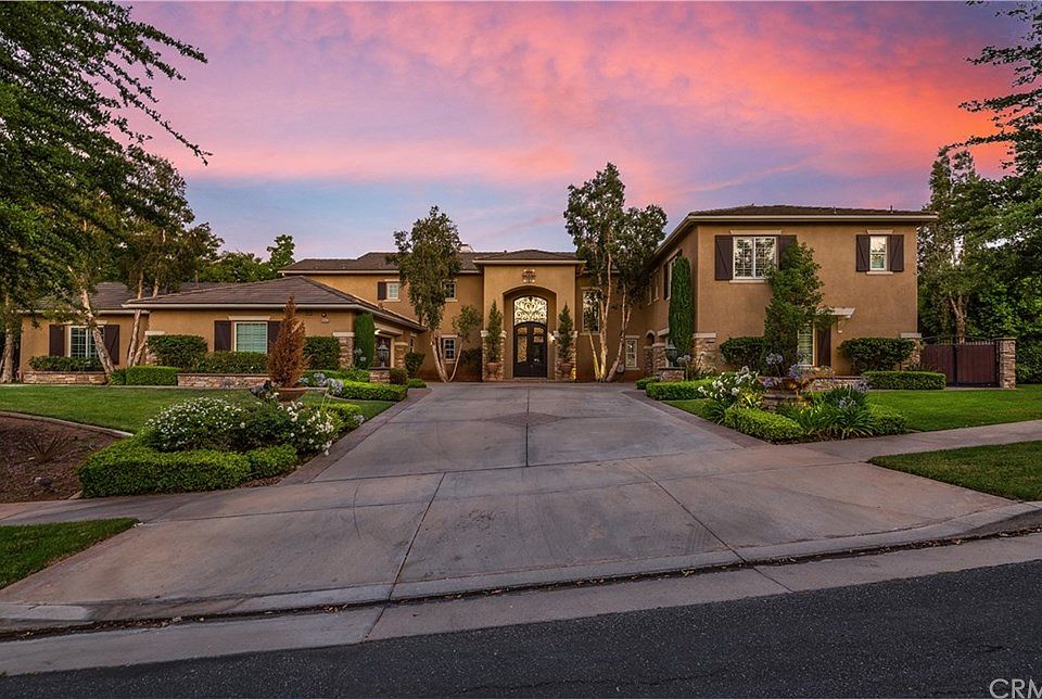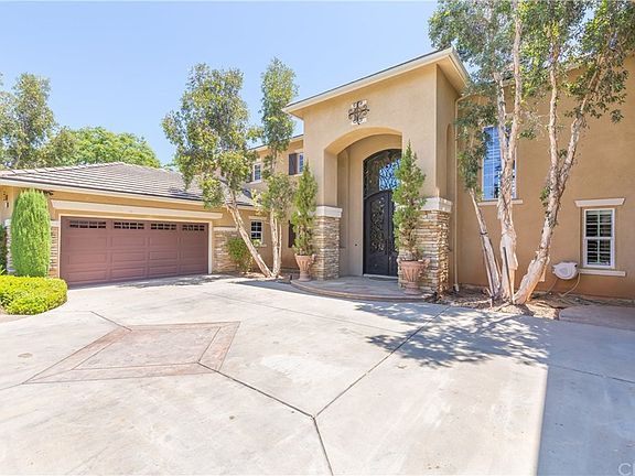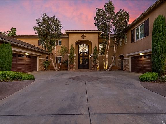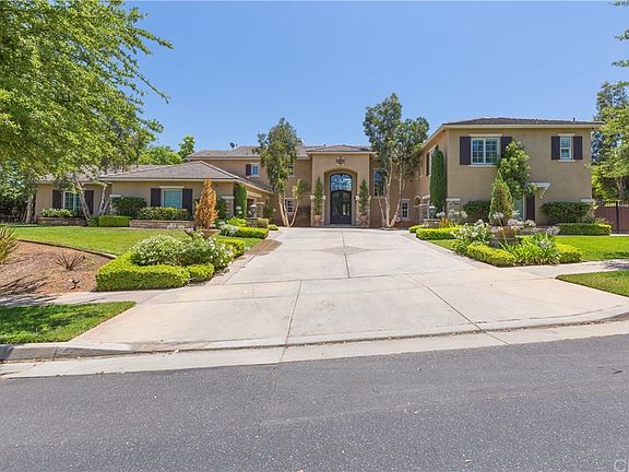 The SEVEN OAKS gated neighborhood is one of the most desired places to live on in Corona and is located within the Santiago High School boundaries. The gorgeous curb appeal will captivate you and as you'll be amazed as you step though gorgeous custom iron double door entry and into sheer elegance. The soaring cathedral ceilings and elegant floors are a stunning combination. Downstairs you will find there are 2 bedrooms, 2.5 bathrooms plus an office, there is no lack of space here! Upstairs there are four bedrooms including the master suite plus an ample den. The master suite retreat has been converted into a closet for a total of two enormous walk-in closets. Also, you can enjoy the view of your stunning backyard from the master bedroom balcony. Other interior features include, Window shutters, ceiling fans, crown molding, coffer ceilings and there is direct access to the backyard from many rooms downstairs. The backyard is perfect for entertaining and boast many features such as a detached covered outdoor kitchen, a separate sitting area with outdoor fireplace, a beautifully designed pool and spa, a playground area and a half basketball court to better your game! Lush greenery adds that touch of class and beauty plus added privacy. SAVINGS ALERT! Save big with the paid off 32 Solar Panels!