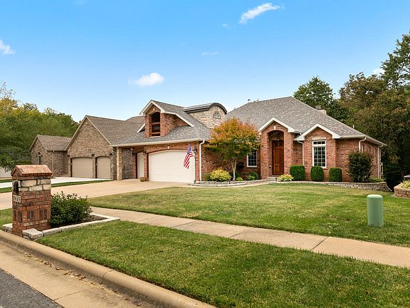 Impressive 1.5 story walkout basement home in gated Battlefield Ridge subdivision! Home offers foyer with hardwood floors leading to formal dining room and living room with vaulted ceiling and stacked stone fireplace. Kitchen has beautiful open beam ceiling, center island, breakfast bar, back splash, an abundance of cabinet space and dining area. Master en-suite has raised ceiling, dual sink vanity, walk-in shower, jetted tub, and large walk-in closet. There are two additional nice sized bedrooms, a full bathroom, half bathroom and large laundry/mudroom with built-in cubbies. Upstairs there is a bonus room with its own private balcony, a full bathroom, and an office nook. Basement features large living area, rec room, bar, two bedrooms, and full bathroom. Deck out back overlooks fenced yard with stairs to patio below. New roof 2019. New water heater Oct 2020. Call to schedule your private showing today!