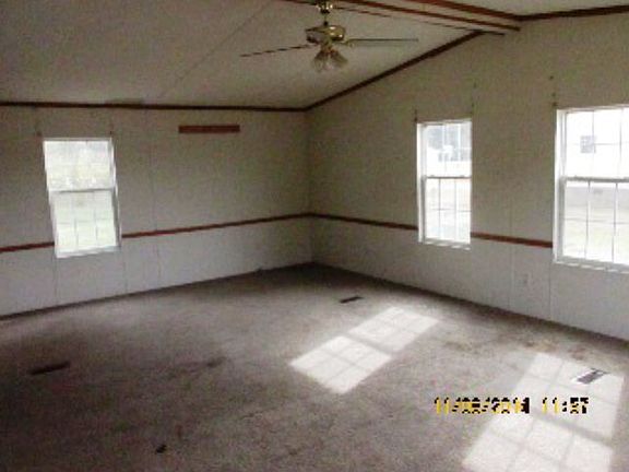 Bright, open floor plan in 3BD/2BA doublewide in country setting. Spacious kitchen, lots of cupboard space. Large master suite w/double vanity and separate shower. Equal Housing Opportunity. Sold as is. Seller makes no repairs. HUD, its agents and/or assigns make no representation as to the existence of mold, radon, or lead-based paint and is not liable for the potentially harmful effects thereof.