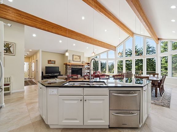 Almost 20 acres of Nehalem Valley peace & quiet. This 2007 built home has been lightly lived in but majorly upgraded: chef inspired kitchen with quartz counters, built-in rice cooker (yes, really), wine fridge, SS appliances, pantry & hand-wash sink. Walls of windows frame the forested views and fill the open-concept living space with light. Step out onto your massive 1,000 sq ft deck, ideal for parties or peaceful coffee mornings. Stay cozy with heated tile floors throughout and a stunning stone fireplace, 3 big beds, 3 full baths, and a giant laundry room with storage for days. Bonus perks: Cherry trees, fenced garden, high-end wood shutters, attached 2-car, extra deep garage (plus separate shop/garage), and easy access… no stairs needed when unloading groceries! Just 6 miles to Manzanita Beach and views of the Nehalem River, Onion Peak, and coastal mountains all around right from the property!