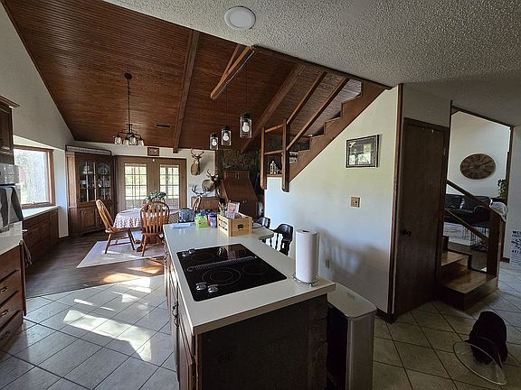 4 bed 2.5 bath. Additional 305 sq. (16.5'x18.5') Basement with central heat & air and electric, no leaks or seepage what so ever in basement. Could easily be a 5th bedroom/game room. Cabin style home with cedar beams and huge rock fireplace with Buck wood burning insert (no gas) and wood box. Anderson windows throughout. Master bedroom is downstairs with the additional 3 bedrooms upstairs. All 4 bedrooms are 175 sq. (12'x14.5'). The emphasized space is downstairs as everything is wide open. All electric, no gas, septic system and city water. New 400 amp breaker box supplying the property with utilities stretching to west side of property where pre-existing house use to sit. New security system with 7 cameras. Attic access through garage ceiling.