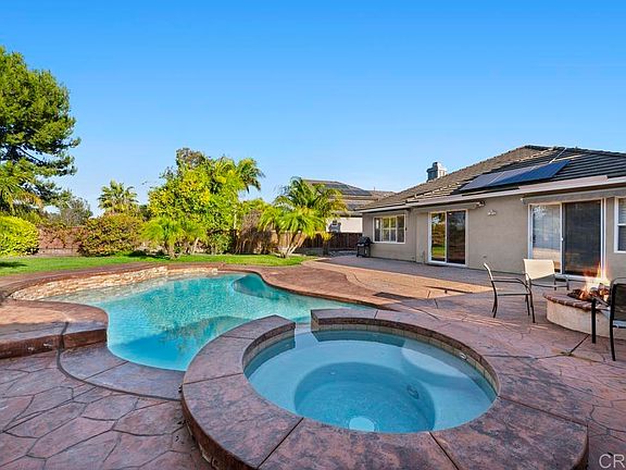 Completely remodeled SINGLE-STORY home with POOL and HUGE, PRIVATE BACKYARD oasis in Calavera Hills awaits! Exquisitely redone, this light and bright 3 bed/3 full bath open concept w/vaulted ceilings features an expansive kitchen that boasts an oversized granite island and soft-close, high-end shaker cabinetry with tiled backsplash and new appliances. RESORT-style backyard features a large pool and spa, firepit, walking trail, concrete decking, retractable awnings, fruit trees, palm trees, and is professionally landscaped. New LVP flooring runs throughout the house, newer A/C, wood plantation shutters adorn every room, new vanities, sinks, fixtures and countertops in all of the bathrooms, interior & exterior has been recently painted, master bed has a large, custom walk-in shower and master closet has built-in drawers & shelves. Solar electricity, solar heated pool/spa w/remote control. New garage doors have been installed. Within walking distance to Calavera Lake, schools, shopping, restaurants, and a short drive to the ocean, this home has it all!