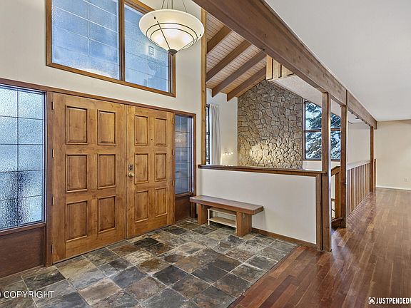 This wonderful spacious home in desirable midtown Geneva Woods location is a must see! This home features over 4358 square feet, 4 bedrooms, 3.75 bathrooms, steam shower in master bath, large bedrooms, high ceilings, spectacular view of Chugach MTNS, granite and travertine counters, a spacious rec room with a wet bar, a kitchen that is perfect for entertaining,