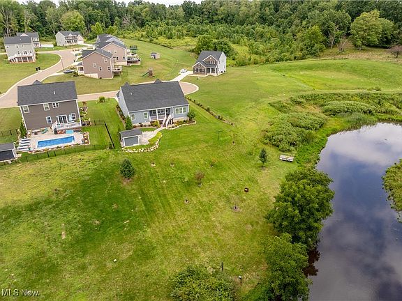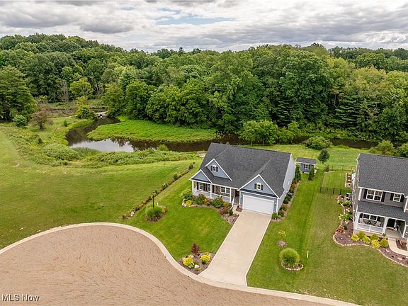 This gorgeous 3 bedroom, 2 full bath ranch has a premier secluded setting at the end of a cul-de-sac in Jackson Township. Fall in love with the treed, private lot which overlooks a large pond, ideal for watching wildlife, fishing, relaxing or entertaining from the maintenance free covered deck or lower level patio. The yard, with an irrigation system, has been professionally landscaped and is ideal for enjoying the outdoors. From the front covered porch you enter into the beautiful home with upgraded finishes and an open floor plan. The great room has a coffered ceiling, large windows with spectacular views and is open to the eat-in kitchen with granite counters, a tiled backsplash, oversized island, stainless steel appliances, a walk-in pantry and a dining area with walk-out to the covered deck. There is a wonderful split-bedroom layout for privacy. The first floor primary suite also has an additional walk-out to the covered deck, a full bath with walk-in shower, dual vanity and two closets. There are two additional bedrooms, a full bath and a laundry on the main level. The large lower level is great for storage or is ready to finish and is plumbed for a full bath. Lots of storage, an outdoor shed, and under deck storage area. This lovely home is move-in ready and has a fabulous location close to restaurants, shopping, grocery stores and the highway.