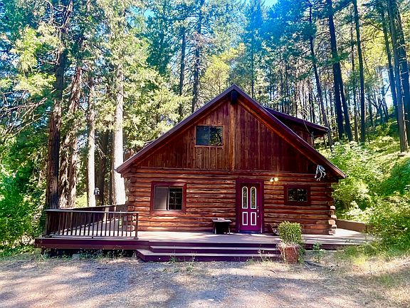 This rustic 2,156sf Homestead Log Home, built in 1984, is a charming 3 bed, 2 bath set back off Anderson Creek Road and nestled in trees, providing privacy while being only minutes from downtown Talent. The 6.52-acre property has two driveways, a sunny lower acreage, partially fenced with a covered hay storage structure. Furthermore, there is a spacious 1,800sf heated shop/garage with epoxy flooring that can accommodate up to 5 cars. The home has a wraparound deck, water feature, wood-burning stove, kerosene heating unit, and a downstairs guest bedroom, full bath, and laundry room. Upstairs features an additional guest and master bedroom with a walk-in closet and a bonus area in the master perfect for a reading space, office or hobby area. Perfect for those who desire tranquility, privacy, and peace.