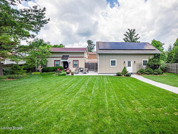 Welcome to this exquisitely remodeled St. Matthews Craftsman home. In addition to the beautiful main house, the property includes a recently built three-car garage, a two-bedroom carriage house/ADU, and a whole-house solar system! From the spacious covered front porch, you'll enter into a warm & inviting living room. This space boasts a stunning stone fireplace flanked by custom built-in cabinetry. The hardwood flooring throughout the main floor adds a touch of elegance & timeless beauty. The dining room, complete with a bay window, is spacious & open to the kitchen - an ideal setting for entertaining. The kitchen is a chef's delight, featuring ample storage, Kraftmaid cabinetry, and GE Café and Profile appliances. The primary bedroom is a serene retreat with two closets & an en-suite bat h. The en-suite bathroom is bright and beautifully appointed. The main floor also includes a half bath & first-floor laundry closet. Upstairs, you'll find a large full bathroom & two generously sized bedrooms, each with walk-in closets. The partially finished basement offers a cozy family room & plenty of unfinished space for storage, along with another set of washer/dryer hookups. Step outside to enjoy the covered back porch off the kitchen & a large patio, perfect for gatherings. The fully fenced yard ensures privacy & security. The oversized 3-car garage offers many options & the charming Carriage House, complete with a full kitchen and laundry, is perfect for long-term stays by family and friends or as an income-generating rental, currently yielding $1850 monthly. This home is beautiful and energy-efficient, thanks to a 12.8 kW solar system, which ensures low electric bills & stability against rising energy costs with a fixed solar payment that will be transferred to the new owner. This Craftsman-style gem is a unique blend of historic charm, modern amenities, & financial benefits, making it a must-see property.
