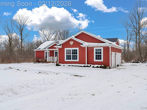 2018-built ranch home on 3.38 acres with convenient access to I-69. The home features an open floor plan with 2 bedrooms and 2 full baths, including a primary bath with barrier-free shower. Interior doorways are 36 inches wide for accessibility. Home was design for a potential third bedroom. Property includes a finished attached 3-car garage with storage area above. Whole-house Generac generator system is installed for peace of mind. Newer construction with modern layout and functional design.