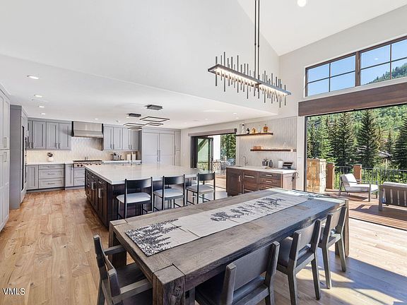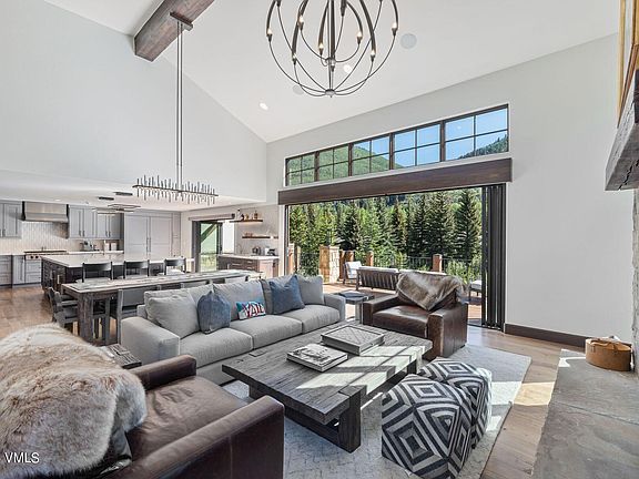 Spectacular mountain home on the banks of Gore Creek! This beautiful duplex is situated on a lush .68-acre parcel, in a stunning high alpine setting on prestigious Lupine Drive in East Vail. Completely remodeled inside and out, this property boasts 4 bedrooms plus a loft, 5 total bathrooms, and over 4,000 square feet of living space on 3 levels, with a 2-car garage. The gourmet kitchen is located on the entry level and features an open design, with a large island and Wolf/Sub-Zero appliances. The kitchen and living room each have accordion doors that open completely to bring the outdoors in while highlighting the impressive mountain views and soothing sounds of the creek. The upper level contains a luxurious primary suite, a large guest suite, and a loft, which can function as an office, media room, or additional sleeping area. The lower level offers a family room, fitness area, and 2 additional guest suites, perfect for entertaining; the walk-out patio provides for a hot tub and access to the grassy yard space, complete with irrigation. A rare turn-key experience, 3947 Lupine Drive A is offered furnished, including the AV equipment, and embodies a rare blend of luxury and practicality, with all that Vail has to offer at your fingertips.