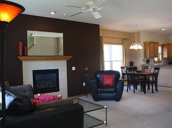 BEST DEAL IN THE MANSIONS! Stylish, quality-built townhome features private entry, private 2 car garage, 9 ceililngs and real wood flooring. Cozy up to the fireplace or cook for guests in the kitchen complete with breakfast bar and pantry. Upstairs features a full master suite, sunny second bedroom with a full separate bath. Lower level area fully finished with storage, great for office or exercise room. Close to bike trail, dog park, shopping and more.