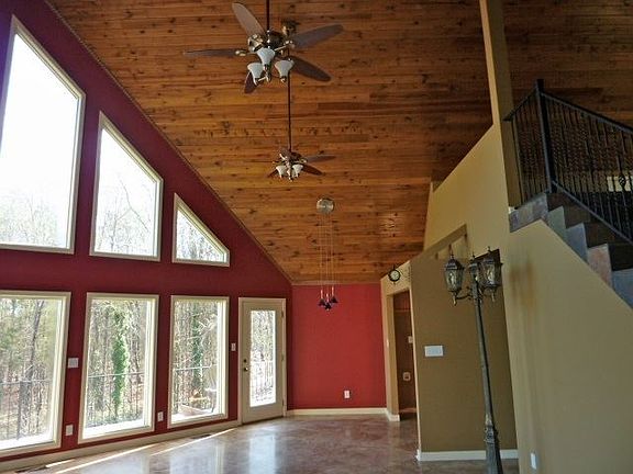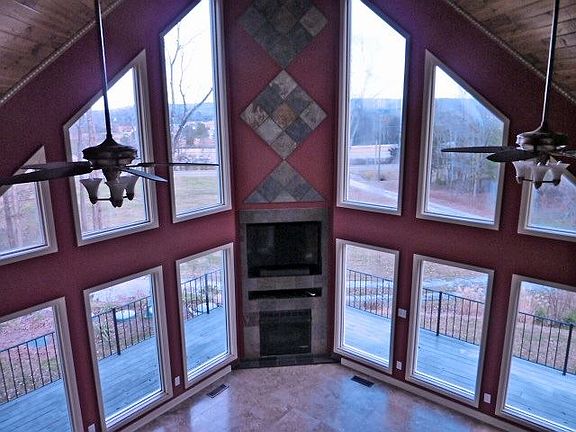 Perched on a hillside in Priceville area, this unique contemporary custom home has soaring vaulted ceilings and a wall of windows to connect the outdoors to the indoors. Imagine coming home to this WOW home! You will be amazed by the exquisite tile and stone designs in the baths and kitchen created by the owner, who was one of the finest craftsmen in this area. The great room/dining area has vaulted ceilings of solid wood, travertine tile flooring, gas log fireplace and opens onto a wrap-around very private open terrace. Upstairs is perfect for entertaining: loft overlooks the great room and opens to a media room. Both of these rooms could be used for sleeping! Knee wall storage upstairs.