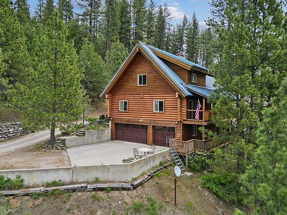 Soak up the sun all day with 132 feet of southern-exposure waterfront on beautiful Deer Lake. This 4-bedroom, 4-bath log home offers year-round comfort, with sweeping lake views from nearly every room. The main level features a spacious great room with a wood-burning fireplace, hardwood floors, and a well-appointed kitchen with stainless steel appliances, quartz countertops, a pantry, and a wine fridge. The main-floor primary suite includes a walk-in closet and ¾ bath, while the daylight basement adds additional bedroom space and flexible living. A large loft provides even more room to relax or entertain. Outside, enjoy two covered decks, a fire pit, multiple garden areas, and excellent parking. A 30x30 shop adds versatility, and the deep-water frontage, beach, and EZ dock make lake days effortless. A true Deer Lake retreat—perfect for everyday living or a getaway escape.