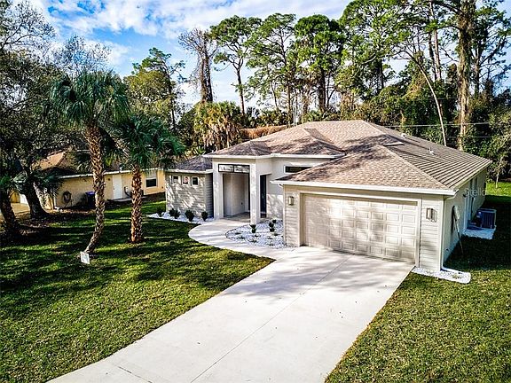NEW CONSTRUCTION! CITY WATER/SEWER! This QUALITY custom built home by Tenbusch Construction features 3 beds, 2 baths, and a den. The home features an open floor plan with wood plank porcelain tile throughout, 10'-14' high ceilings, PGT Low E Vinyl WinGuard windows (hurricane glazing), Icynine spray foam insulation in attic for energy efficiency, Thermax insulated block walls, soft-close wood cabinets in the kitchen and bathrooms, stainless steel appliances, Moen plumbing fixtures, level 3 granite countertops, imported wall tile that goes from the floor to ceiling in the wet areas, 30 year dimensional shingles, smooth stucco finish with deco cementitious accents, reinforced slab with wire mat just to name a few. Extensive list of upgrades and unsurpassed quality. This home is conveniently located in the heart of North Port, close to I-75, schools and shopping!