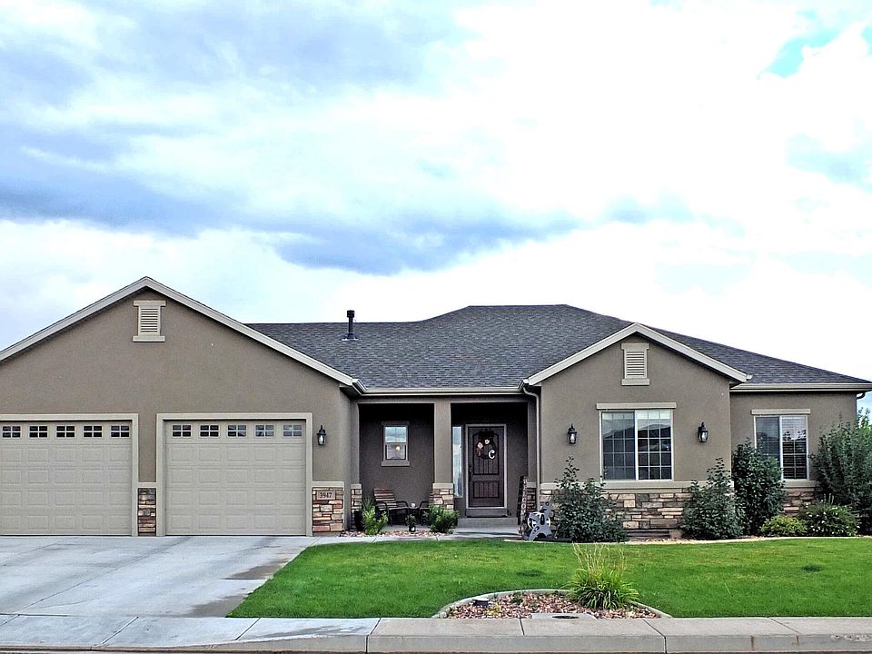 Pristine Home in Mountain Shadows Subdivision! There are so many amazing upgrades in this home that it is hard to mention them all - make sure and check out the virtual tour link. This home has a fantastic open layout with so much natural light, granite countertops throughout, 9 and 10 foot ceilings(check out the gorgeous living room ceiling), both levels are fully finished featuring a full 6 bedrooms and 3 full baths! The family space downstairs is very spacious it features a cute reading nook as well as a kitchen-wet bar area and a very nice pellet stove for extra heat! This house will be very energy efficient with included solar panels and the pellet stove. The yard is a dream as well, fully finished with a block wall, lifetime shed, covered patio, and backs to the SUU farm allowing for unobstructed views! All of this in one of the quietest neighborhoods in town!