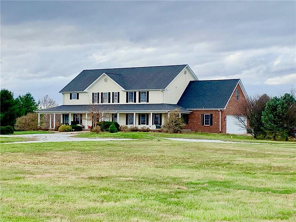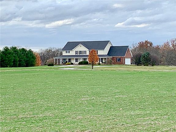 Over 5,500 sq ft and 10 acres in the beautiful country! Wonderful 4 BR home w/full walkout basement & wrap around porch. Bsmt is partially finished w/some finished walls, roughed in for full bath in basement, and option for fireplace in basement. Exercise/dance area with mirror wall. Loads of options in the basement for whatever your needs may be! Spacious MBR w/2 walk-in closets and full bath w/walk-in shower and double vanities. Roomy kitchen w/breakfast nook that opens to screened porch and upper deck. Super fun home theater room w/wet bar! 2-story great room w/gas fireplace. Main level laundry w/2nd possible laundry on upper level off MBR. 2 bedrooms on upper level share Jack N Jill bath w/separate private vanities. & More!
