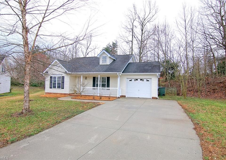 Front porch invites you into this move in ready one level living home on cul-de-sac lot. Convenient location to Greensboro, High Point and Winston-Salem. Vaulted ceiling in great room with gas log fireplace. Covered back porch and fenced yard. Refrigerator, washer, dryer and storage building remain with home.