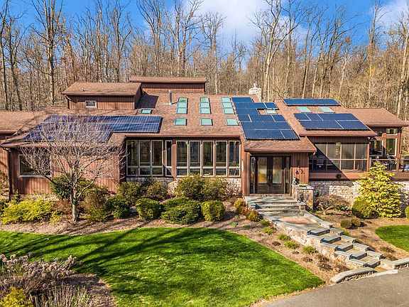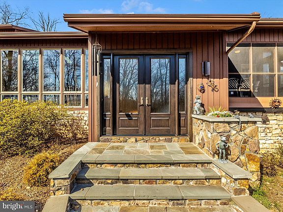 Welcome… to one of Frederick County’s unique, contemporary homes; surrounded by almost ten acres of forest rich with natural dogwood and redbud trees, mature mountain laurels and standing oak. The house is embraced by a lush landscape and flowering plants that showcase the home’s natural beauty through all seasons. Follow the natural stone path around the multi-level, lighted deck, around the house and into the adjacent woods to enjoy each season’s presentation. Located at the crest of a hill, the home was designed to blend with its surroundings. The site orientation and arrangement of interior spaces allow the owners to enjoy both sunrises and sunsets. The natural light provided by 18 skylights and the warmth of the midday sun brighten and cheer the interior of the multi-level home. The floor plan emphasizes the sloping terrain of the property, and the extensive use of glass in the design brings the outside in, taking advantage of nature’s year-round display of colors and seasonal changes. Stand in any part of the house and look in any direction to enjoy the outdoors, and if you are fortunate, you may be surprised by a flock of turkeys, a red fox or a small herd of deer. This 4,800 square foot, 3 bedroom, 2-1/2 bath home earned the 1990 Award of Excellence for custom homes presented by the Frederick County Builders Association. The owners have taken great care to maintain its architectural intent and integrity when expanding the master bedroom and kitchen. As well, the interior appointments were upgraded through the years to reflect today’s conveniences and always to ensure any upgrades were in keeping with the natural beauty of the home’s interior and its surroundings. The interior is warm and inviting and ideal for a warm cozy night in front of the fire, hosting a small dinner party, or enjoying a large gathering of family and friends. Visitors entering through the front doors into the sunroom are surprised to find a butterfly- shaped pond teeming with goldfish and koi. Stepping up into the interior of the home, they are welcomed by the openness of the home, the 2-story ceiling… and by the 200- gallon aquarium where aquatic life is visible from all sides. The house is environmentally progressive with an array of 56 solar panels that can produce up to 40kWh of energy per day. This house most certainly found its home at the crest of the hill amongst the mature stand of trees and the lovingly owner-designed and maintained gardens. The house is situated to provide its owners with privacy, seclusion and quiet; but located a mere 15 minutes from the City of Frederick and its many restaurants, entertainment venues, shops and other amenities. AND… approximately one hour to either Washington, D.C. or the city of Baltimore; 25 minutes to the town of Leesburg and its restaurants and shops; and, a mere 10 minutes to the Point of Rocks train station. Welcome… to this unique and contemporary home… just minutes from Frederick yet offering peace and quiet in a wooded, country setting.