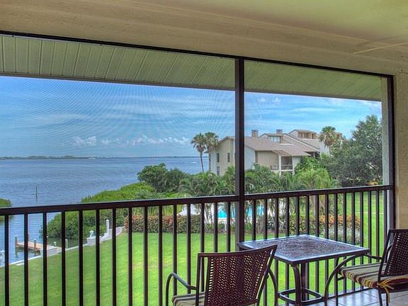 Enjoy the Florida lifestyle in this waterfront turnkey Condo located in the gated community of Mariners Cove . This 2 bedroom ,2 bath Condo is beautifully furnished and has spectacular views of Palm Sola Bay from the 32'screened-in lanai. There is an eat-in Kitchen ,Office/Den with 43" T.V. and desk area, formal Diningroom,large Livingroom, wet bar and wood-burning fireplace .The Master Bedroom has a King size bed,55" TV,sliding glass doors that provide water views and access to the Lanai and an en-suite Bath with Walk-in Shower and Jacuzzi tub.The second Bedroom has 2 Twin beds ,32"T.V. and is separated from the Master by the guest Bath and Washer /Dryer.Up the spiral staircase is an over-sized loft set up as a third bedroom. Mariners Cove is a hidden gem with 2 pools ,hot tub,tennis ,and boating access within the community and the beautiful beaches only minutes away.Elevator brings you up from the covered parking area. Florida living at its best! 1 small pet allowed 90 Day min.