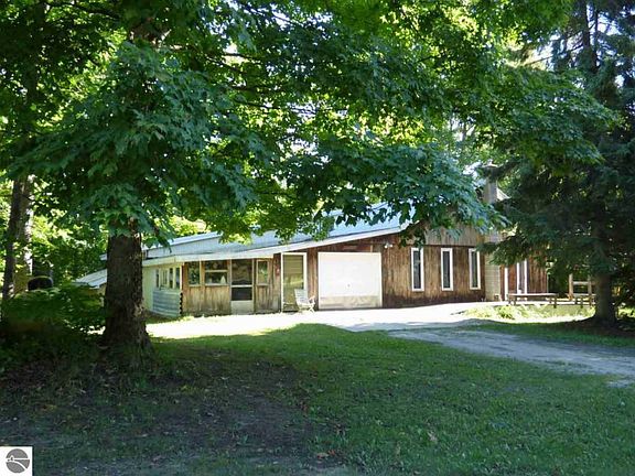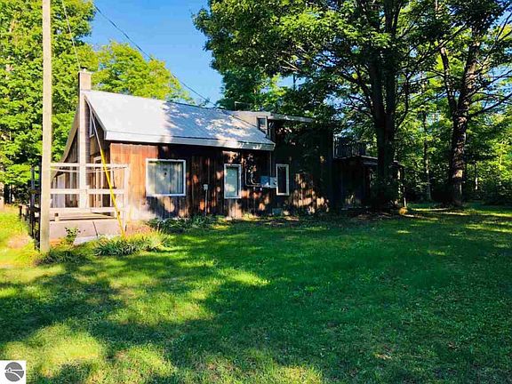 Painstakingly constructed by the seller over a number of years, this home is an example of ingenuity in the use of reclaimed and repurposed materials. The metal roof was designed so that the it would not have to be shoveled during heavy snows. The home has baseboard heat, radiant heat in the living room area, and a wood stove. From the hardwood floors and counters that used to be in the 5 and 10 store in Mancelona, to the marble sink and claw foot tub in the master bath, to hardwood floors under the carpet in other the rooms, this house offers extras not typically found in homes in the price range. With 4 bedrooms, 2 baths, large living room, a full-length sunroom and a porch, you'll have plenty of space. The laundry houses the boiler, along with cupboards and shelving for storage. There are two bedrooms on the main floor and two up. The upstairs master is spacious, and enjoys views, over the back deck, of the towering trees. The bath has a clawfoot tub, with a shower wand. A track on the ceiling allows you to surround the tub with a curtain when you take a shower. The main floor bath includes a stall shower. There are two garages, both with door openers, that are connected by a service door. These offer plenty of space for your vehicle, or if you like to ride the trails, your ORV's and snowmobiles. There is also a lean-to in the outer garage where you can keep an abundant supply of wood out of the weather. Paths are cleared through the 2+ acre parcel, and it backs up to the power line, so you have privacy. You can also use 32' of the power line property for recreation. Located in the heart of northern Michigan's best trails, this will make a great full-time home, or a tremendous recreation getaway. The property has 1/8th mile along a paved county road and is on the school bus route. Spruce it up a bit and enjoy the best of northern Michigan recreation. Seller is willing to sell some furnishings.