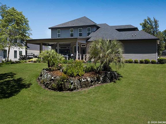 Luxury Custom Built Contemporary "Builder" home is situated in the back of Wilds Plantation Unit 3. Dramatic views of Beautiful Hardwoods, Nature and Privacy Common Area! Covered wood deck for entertaining and the feel of "Old Florida" from this .48 Acre lot. Transom Windows and High ceilings throughout enhances the Open Great Room with extensive wood flooring. Floor-plan boasts of 2 Master Suites, or 5 Bedrooms plus office. Central Vacuum, 3 Car SIDE Entry Garage. This Beauty can be a true "Two Family" home! Master Bedroom and travertine tile Bath downstairs with Study/den/bedroom an large Breakfast Room. Exquisite Double Granite Island Kitchen and Stainless Appliances. Great Room, Breakfast room, and Master Bedroom overlooks Stone waterfall and woods in rear of home. 406+ s.f. in Loggia not included in tax info. Energy efficient features with 2x6 Exterior walls, Foam insulation, and Rinnai Tankless Water Heater reflects an average 12 mo Elec. bill of $195.94 for one of the most Energy Efficient Homes in Gainesville.