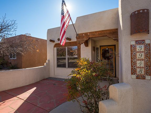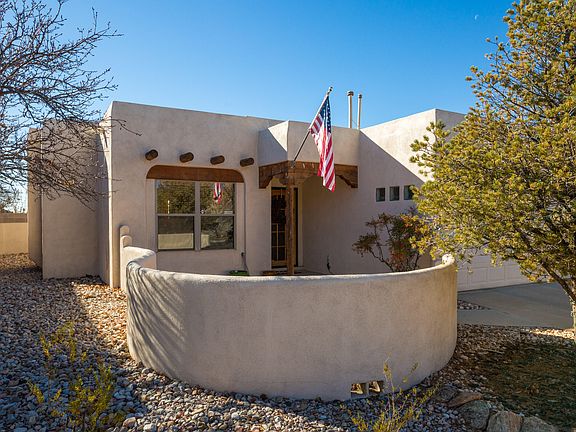 Beautiful home on cul-de-sac view lot. Move in ready, with 3 bedrooms, 2 full bathrooms, 2 car garage. Pueblo-style home, wood ceilings with vigas, Kiva fireplace and double-sided fireplace in Master bathroom. Central forced air heating and recently replaced oversized master cool evaporative cooling. Front courtyard Extensive professional front and rear yard landscaping with 2 covered patios. Come see the unobstructed mountain views off the patio from the pergola. Offer now!