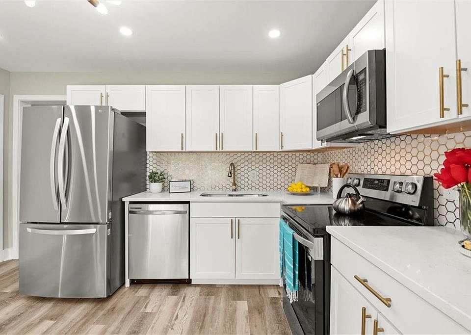 INSTANT EQUITY! You’ll love this beautifully executed renovation, and you will appreciate the attention to detail and its tasteful design. Step into the heart of this home and discover a stunning kitchen adorned with pristine white shaker cabinets, sleek quartz countertops, and state-of-the-art stainless-steel appliances. The kitchen exudes sophistication with its white and gold quartz tile backsplash and vintage gold hardware, complemented by a contemporary light fixture that adds an extra layer of style. From the inviting living room, you'll seamlessly transition to a wooden deck overlooking a spacious, fenced-in backyard—a perfect oasis for outdoor activities and gatherings. This harmonious blend of indoor and outdoor spaces creates a haven for relaxation and entertainment. This split-level home features 3 bedrooms and 2 custom- tiled bathrooms on the main level. The basement is a canvas awaiting your personal touch. With three versatile rooms, it can easily adapt to your lifestyle needs—whether you envision them as additional bedrooms, a home office, a media room, or a combination of these. Two of these rooms offer independent outdoor access to the front of the home. A full bathroom and a designated space for a washer and dryer complete this lower level. This home has been thoughtfully upgraded to enhance your living experience. Enjoy the warmth of hardwood floors, the resilience of LVP flooring, the beauty of custom ceramic tile, and the energy efficiency of new windows, HVAC, and furnace. Fresh interior and exterior paint, along with new doors and a recently replaced roof, ensure that your new home is both beautiful and low-maintenance. Nestled in the charming Baker Hills neighborhood, you'll enjoy the best of both worlds—peaceful suburban living with easy access to major highways, including I-20 and I-285. This location places you close to a wealth of amenities, from shopping and charter schools to Truist Park, the Beltline, Downtown Atlanta, and Hartsfield Airport. Don't let this exceptional opportunity pass you by. Schedule your showing today and experience the comfort and convenience this beautiful home has to offer!