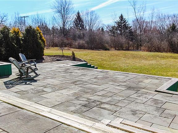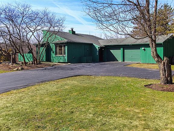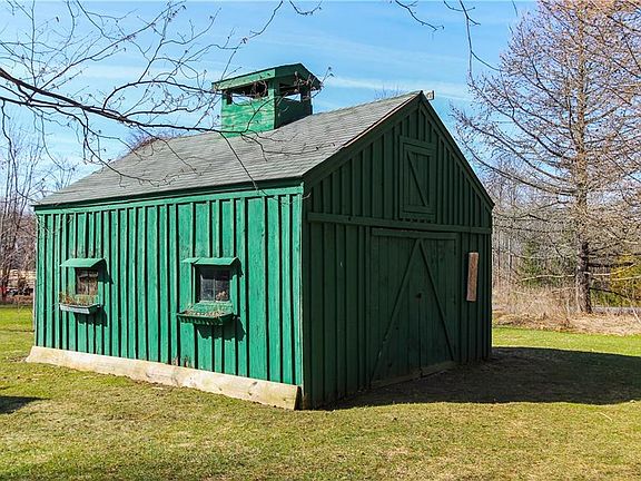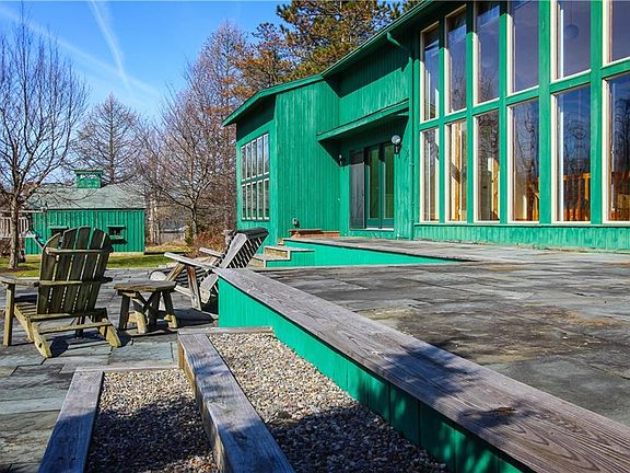 Environmentally conscious 3 to 4 bedroom home just outside the village limit with almost 2 acres and barn. This one of a kind home utilizes 4 sources of energy, one of which is passive solar. The 1st floor plan, complete w/ beautiful hardwoods, features an open Great room with kitchen / dining area looking out into a sun filled atrium and massive stone patio, 2 full baths and 2 foyers. Just a few steps down lead you into a large sun filled space with private 1st floor level access perfect for a home office or in-law suite. The lower level offers 3 over-sized bedrooms, full hall bath and laundry room. This expansive property also features an attached 2 car garage, heated workshop, barn w/ cupola and attached potting shed. Beautifully cultivated landscaping also graces the property.