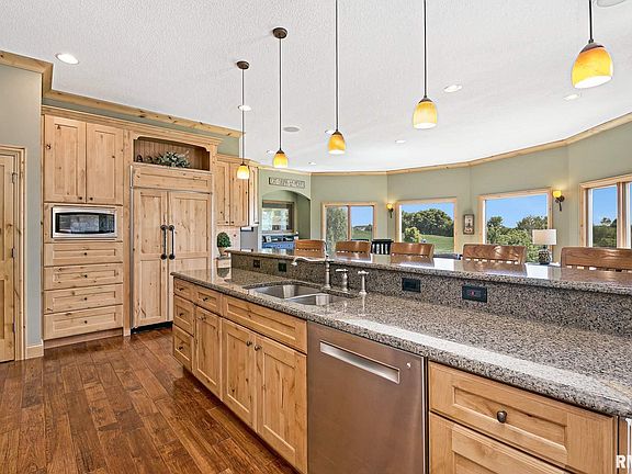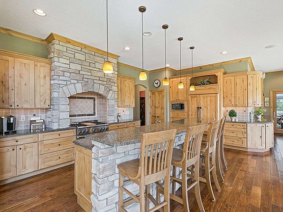 Meander down the private drive enjoying the nicely groomed grounds, to your private estate. A beautiful custom home, over looking the rolling pasture, with weeping willows, old oaks, and a variety of mature trees outlined with white maintenance free fencing. Inside the home you will be amazed with the soaring 2 story great room, and a floor to ceiling stone fireplace. Knotty alder built ins, cabinetry and trim, add a rustic flair. Panoramic views from most every window, whether dining, relaxing in the hearth rm or off to bed. The grand kitchen has ample amount of cabinetry, pantry, sub zero frig, thermador range & beautiful wood floors. Main level master suite, w/private screened porch. 3 lg bdrms up, plus a oversize bonus room. Walk out to a stone and paver patio,& firepit. Heated 3 car gar. A 3 stall horse barn with heated tack room and utility garage, nestled on nearly 6 acres, additional acreage available.